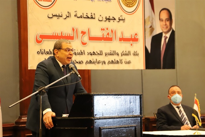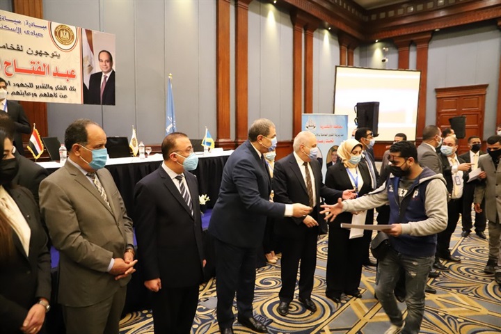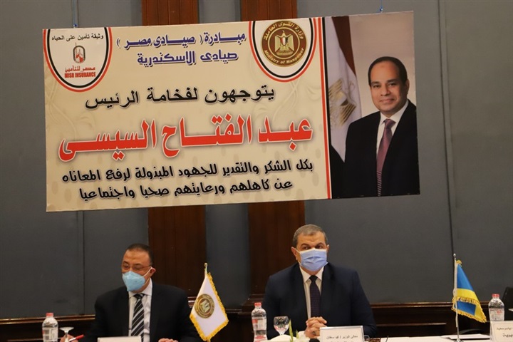 وكان اللواء محمد الشريف محافظ الإسكندرية، قد رحب فى مستهل كلمته بالوزير والقيادات التنفيذية وأعضاء مجلس النواب، مشيداً بالدور الذى تقوم به وزارة القوي العاملة فى الفترة السابقة وما تقدمه من دور بارز فى رعاية الفئات الأكثر احتياجا من أبناء المحافظة من العمالة غير المنتظمة والصيادين.
