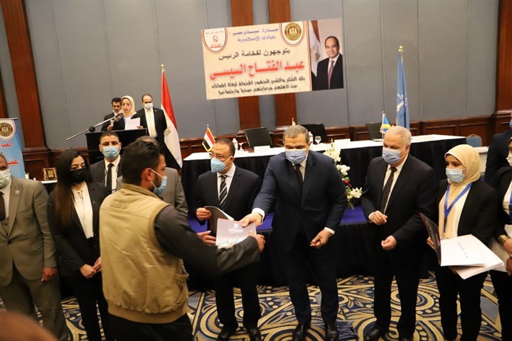 "سعفان" ومحافظ الإسكندرية يسلمان ٩٦١٨ بوليصة تأمين تكافلي