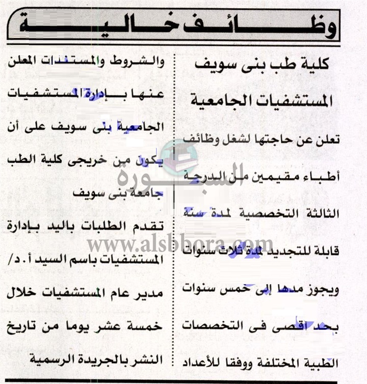 أعلنت جامعة بني سويف تعلن عن وظائف جديدة شاغرة للتخصصات التالية: