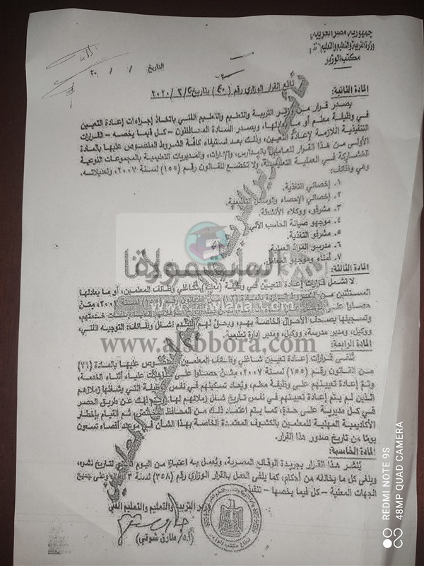 كانت وزارة التربية والتعليم، قد علقت على الشكاوى الواردة إليها من بعض العاملين بالمدارس والإدارات والمديريات التعليمية من غير أعضاء هيئة التعليم، بشأن حصولهم على مؤهلات عليا تربوية أو مؤهلات عليا مناسبة، بالإضافة إلى دبلوم عام في التربية أثناء فترة التعاقد وتم تعيينهم، ويرغبون في إعادة التعين على وظيفة معلم طبقا للقرار الوزاري رقم 40 لسنة 2020.