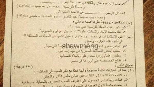 صفحات الغش تنشر ورقة لأسئلة التاريخ الثانوية بعد بدء الامتحان بـ10 دقيقة