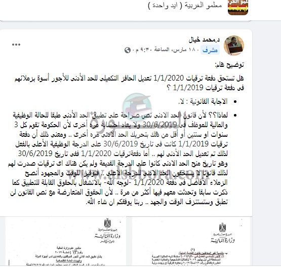 هل تستحق دفعة ترقيات 1-1=2020 تعديل الحافز التكميلى للحد الأدنى للأجور أسوة بزملائهم فى دفعة ترقيات 1-1-2019؟