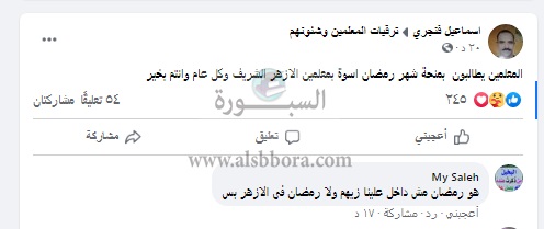 ومعلمين الازهر عايزين مكافأه اخر العام