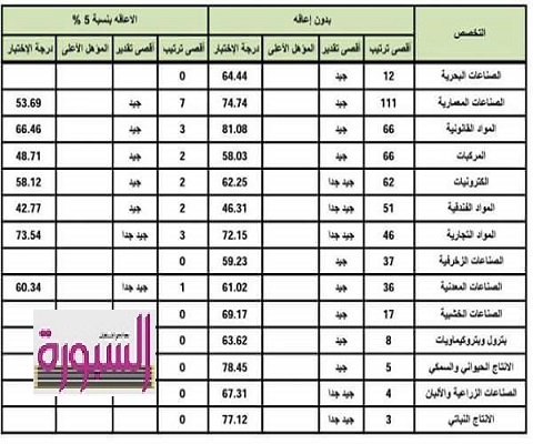 ثانيا بقوم بمراجعة الحد الأدنى للقبول فى التخصص وهو موضح بالجداول بالاسفل