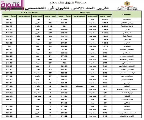 ننشر الحالات المستبعدة من الـ "30 الف معلم "..وتقرير الحد الادني للقبول في التخصص