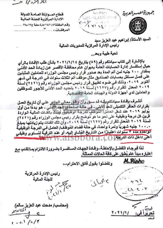 أصدرت الإدارة المركزية للجنة المالية بوزارة المالية منشورا تضمن الآتي:
