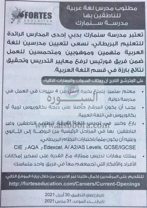 تعلن مدرسة سنمارك في دبي بدولة الإمارات عن وظائف جديدة للمعلمين والمعلمات وفقا لنص الإعلان التالي: