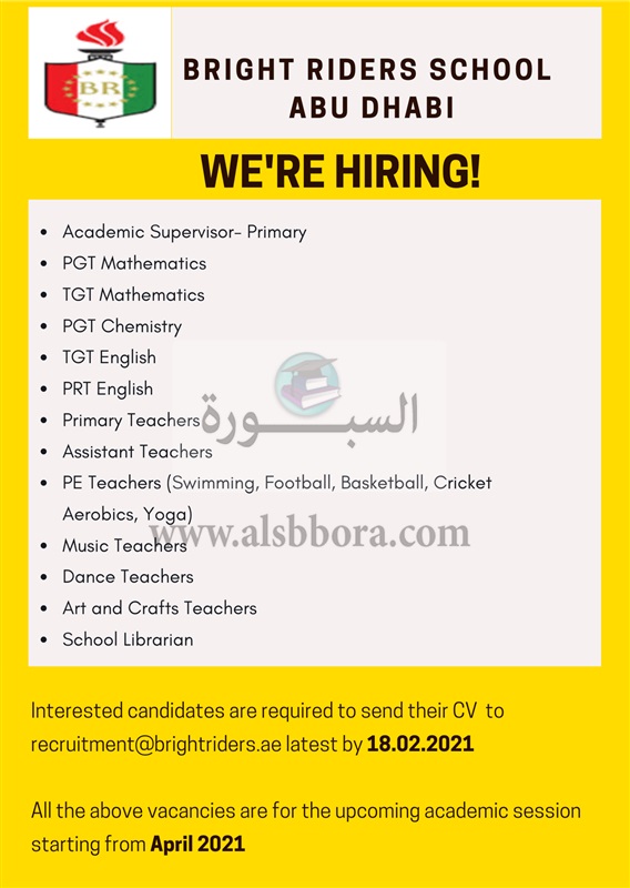 تعلن مدرسة الريادة المشرقة في أبوظبي عن وظائف جديدة للمعلمين وفقا لنص الإعلان التالي: