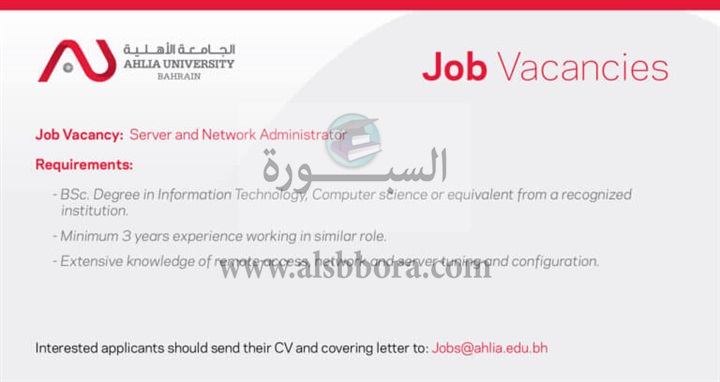 تعلن الجامعة الأهلية بالبحرين عن وظائف جديدة شاغرة وفقا لنص الإعلان التالي: