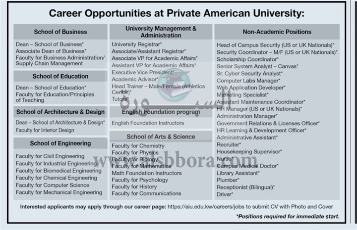تعلن الجامعة الأمريكية بالكويت عن وظائف جديدة لأعضاء هيئة التدريس وذلك وفقا لنص الإعلان التالي: