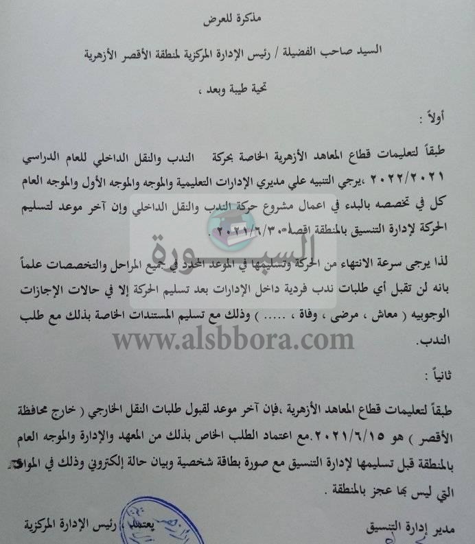 تنشر "السبورة" مذكرة قطاع المعاهد الأزهرية بشأن حركة الندب والنقل الداخلي داخل الإدارات والتي تضمنت الآتي: