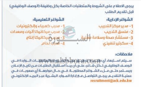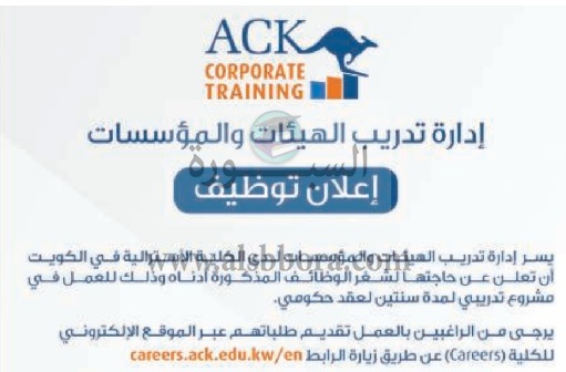 تعلن الكلية الاسترالية بالكويت عن وظائف شاغرة لأعضاء هيئة التدريس في 8 تخصصات وفقا لنص الإعلان التالي:
