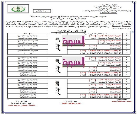 ننشر كشوف مقررات الكتب الثقافية لجميع المراحل التعليمية بالمعاهد الازهرية