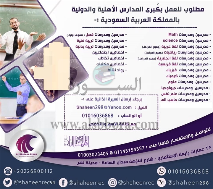 تعلن احدي كبري المدارس السعودية عن وظائف جديدة للمعلمين والمعلمات في مختلف التخصصات وفقا لنص الإعلان التالي: