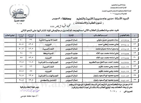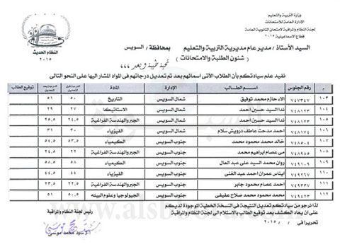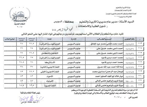 بالأسماء.. "تعليم السويس" تعلن نتائج الدفعة الثالثة لتظلمات الدور الأول للثانوية العامة