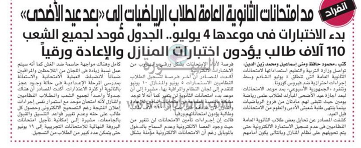 تواصل وزارة التربية والتعليم استعدادتها لامتحانات الثانوية العامة التي تنطلق 4 يوليو المقبل وسط إجراءات احترازية ضد فيروس كورونا.