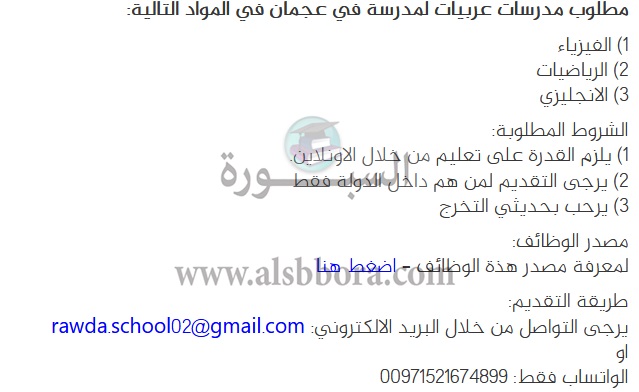 تعلن مدرسة عجمان الإماراتية عن وظائف جديدة للمعلمين والمعلمات وفقا لنص الإعلان التالي: