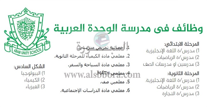 تعلن مدرسة الوحدة العربية الإماراتية عن وظائف جديدة للمعلمين والمعلمات وفقا لنص الإعلان التالي: