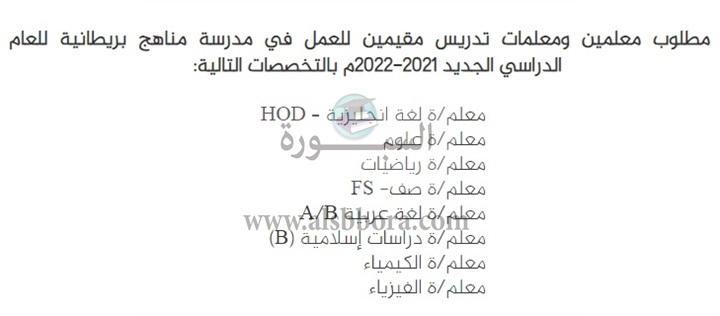 أعلنت مدرسة إماراتية كبري عن وظائف جديدة للمعلمين والمعلمات وذلك وفقا لنص الإعلان التالي:
