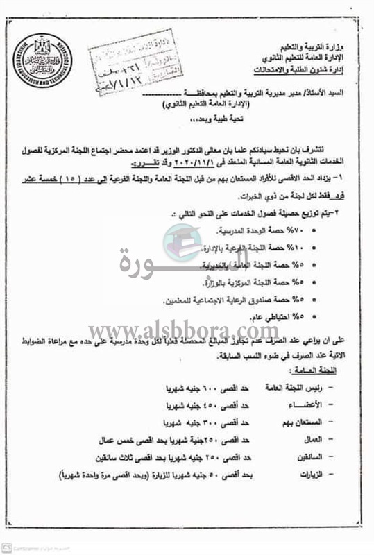 ننشر التعديلات الجديدة فى لائحة صرف مكافأة الاشراف والتدريس لفصول الخدمات للثانوي العام.. مستندات