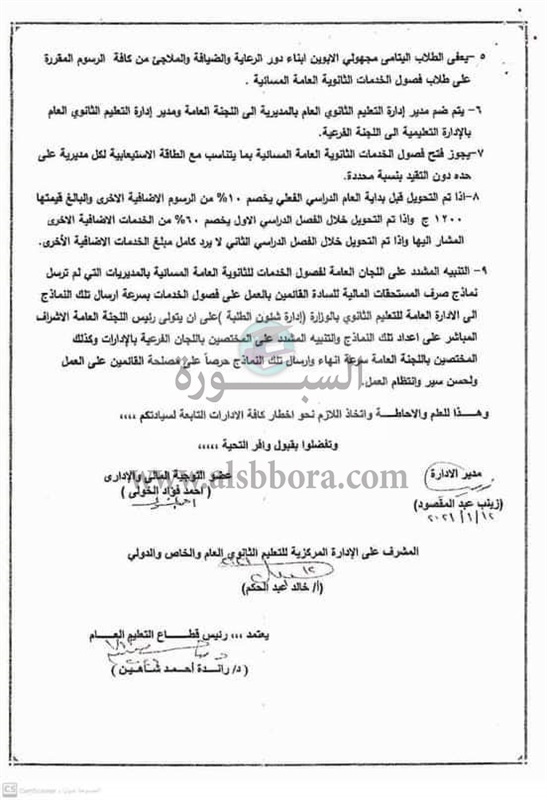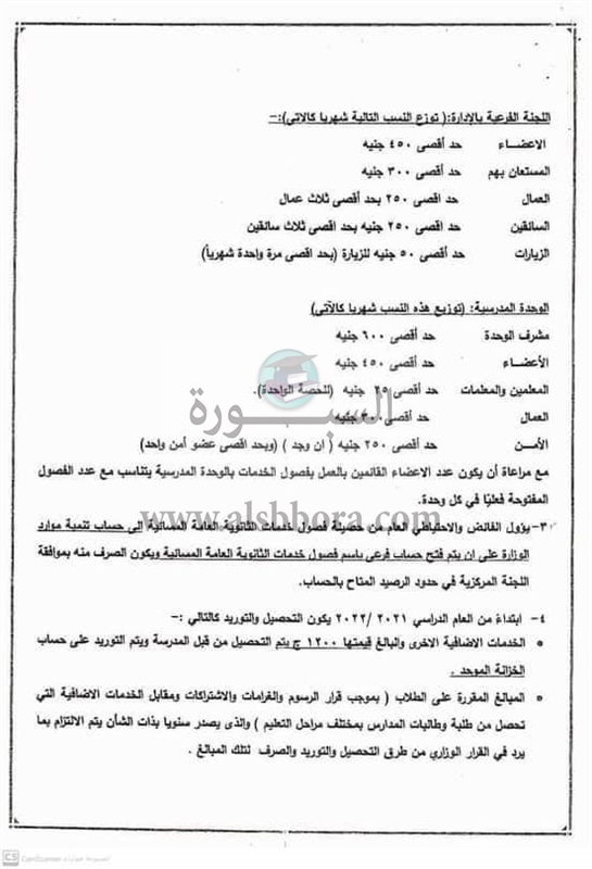 ووافقت اللجنة المركزية لفصول الخدمات الثانوية العامة بالاجماع على تعديل لائحة الصرف لمكافأة الاشراف والتدريس لفصول الخدمات الثانوي العام بداية من عام ٢٠٢١/ ٢٠٢٢.