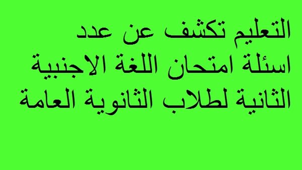 - عدد اسئلة امتحان اللغة الاجنبية الثانية للثانوية العامة