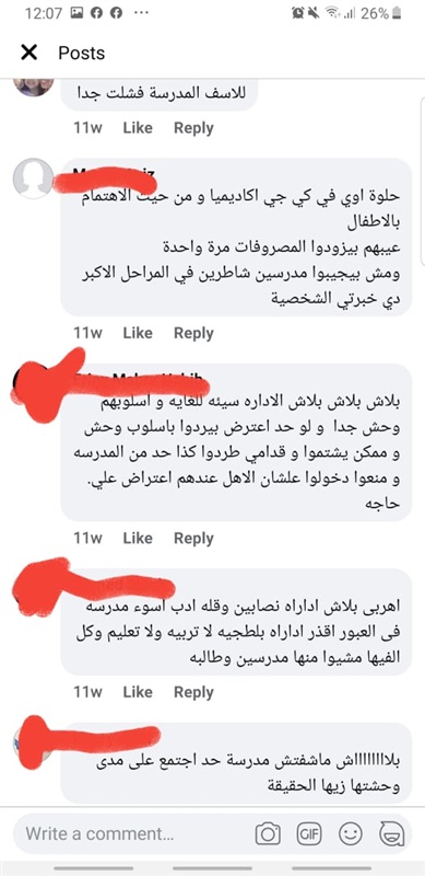 طبعا كان فى كورونا ومعرفتش انقل فقررنا ننقل السنة المقبلة واهى الدراسة اون لاين.. فوجئت بإحدى موظفين المدرسة بيتصل بيه يكلمنى عن كومنتاتى على الفيس بوك وجروب الأمهات على الواتس اب ويطلب منى انى اكتب كومنتات ايجابية وامدح فى المدرسة فرفضت وعنفتوا والمكالمة موجودة متسجلة، ومن ثم تم غلق الاون لاين على الاولاد وبرجوعى ليهم قالوا فى مشكله فى it وهيتم حلها اكتر من شهرين دون جدوى مرة يردوا وسعره لا لغيت بدايه الترم نزلوا الاولاد أول يوم وتانى يوم نزلت اوصلهم واشوف موضوع الاون لاين عشان الهوم ورك بيتبعت عليه تم منعى من دخول الإدارة بحجة انهم كاتبين مواعيد لاولياء الأمور..