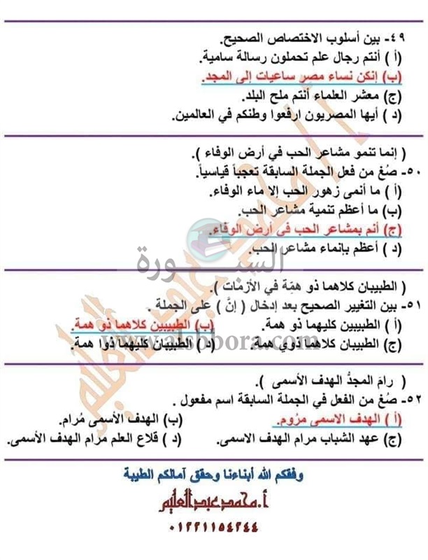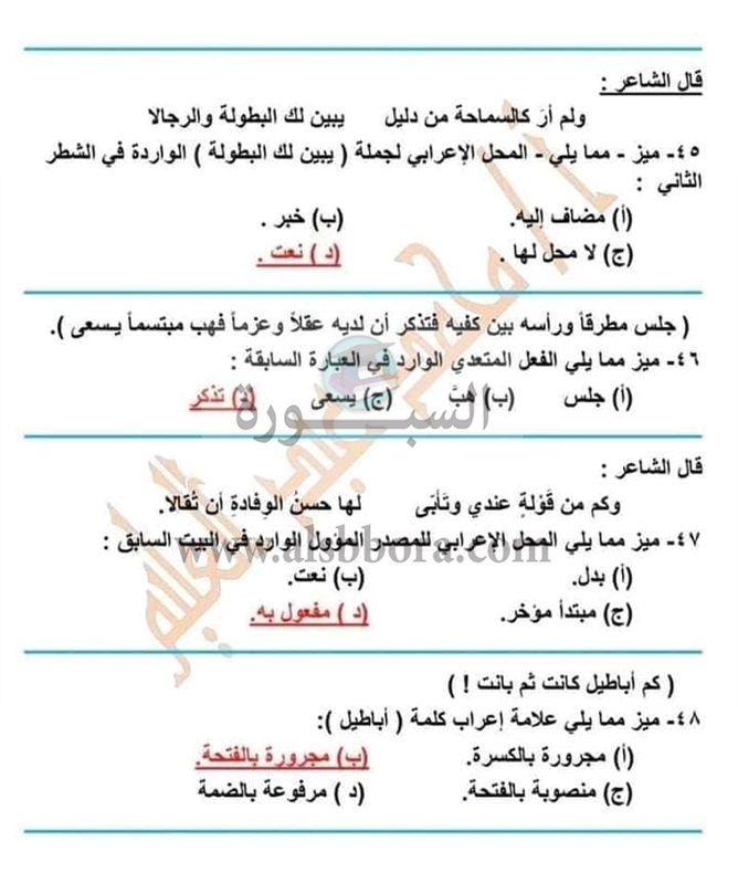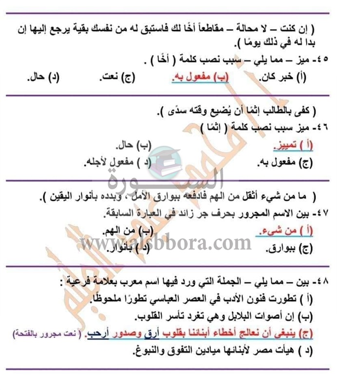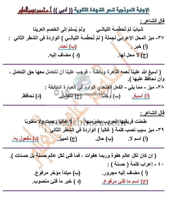 عاجل| ننشر الاجابة النموذجية للنحو فى امتحان اللغة العربية ادبى للثانوية العامة
