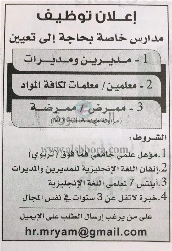تعلن كبري المدارس الإماراتية عن وظائف جديدة للمعلمين والمعلمات وفقا لنص الإعلان التالي: