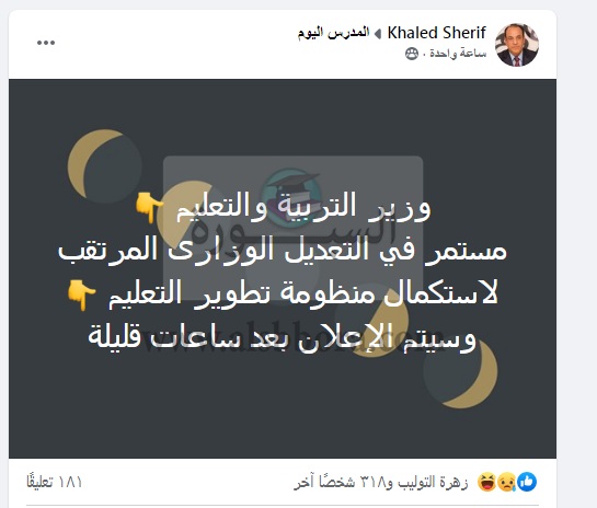 نشر الناشط التعليمي خالد الشريف، تدوينة علي جروب المدرس اليوم، علي موقع التواصل الاجتماعي "فيسبوك" تدوينة تضمنت الآتي: