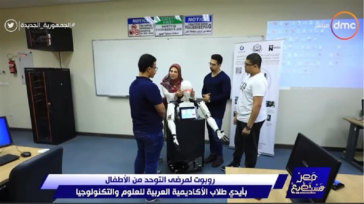 أعلن فريق من طلاب كلية الهندسة بالأكاديمية العربية للعلوم والتكنولوجيا والنقل البحري عن نجاحة في تصميم روبوت من أجل تنمية مهارات الاطفال المصابين بمرض التوحد .