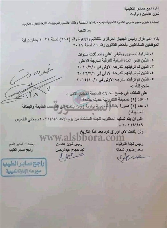 علي ان يتم تسليم المطلوب للجنة المشكلة حتي يوم الخميس 19-8-2021