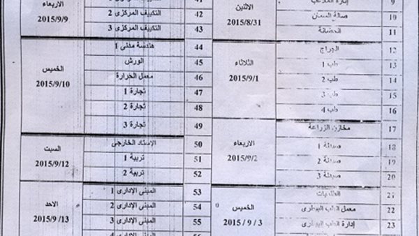البرنامج الزمنى لأعمال الصيانة بجامعة أسيوط لشهر سبتمبر 2015 :