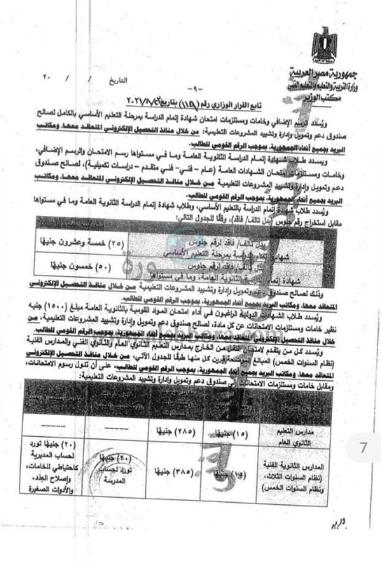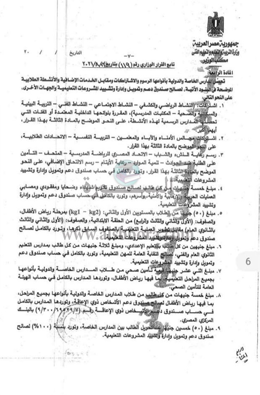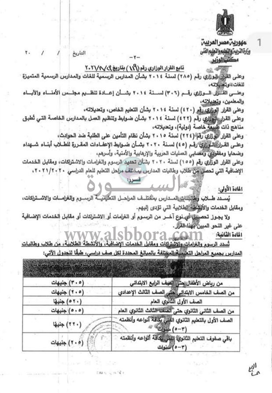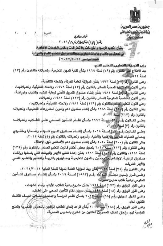 «التعليم» تعلن المصروفات الجديدة للعام الدراسي 2021-2022.. مستند