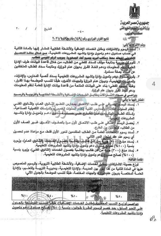وأضافت التعليم، أن هذه الرسوم يتم تحصيلها على الاتى: