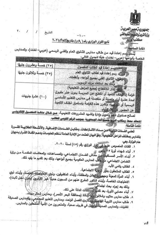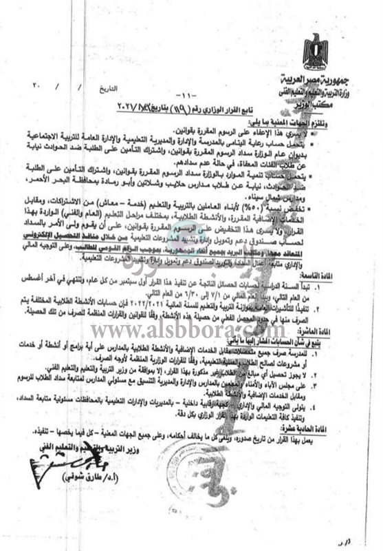 اصدرت وزارة التربية والتعليم، قرارات عاجلة بشأن كافة التفاصيل المتعلقة بالرسوم المدرسية للعام الدراسي الجديد 2021/2022، والفئات المعفاة من المصروفات المدرسية.
