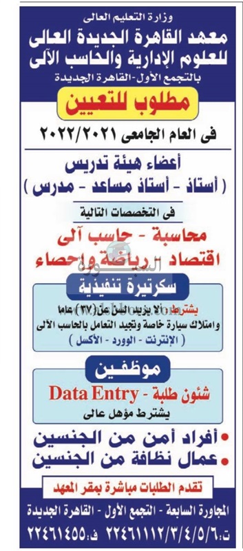 يعلن معهد القاهرة الجديدة عن وظائف جديدة لأعضاء هيئة التدريس وفقا لنص الإعلان التالي: