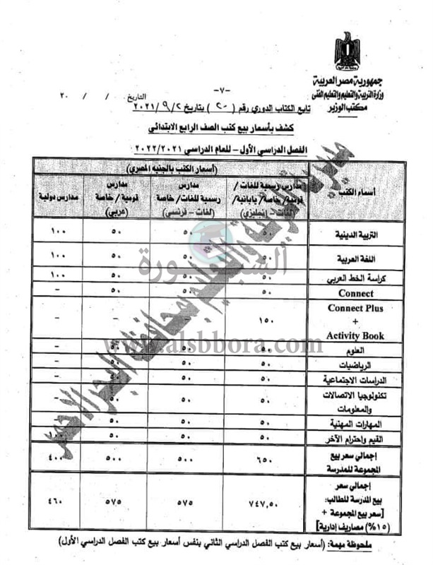 بالنسبة لأسعار بيع كتب الصف الرابع الابتدائي: