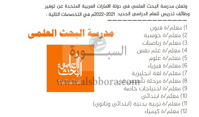 وظيفتك عندنا مدرسة البحث العلمي الإماراتية تعلن عن وظائف جديدة للمعلمين والمعلمات الجمعة 10/سبتمبر/2021 - 11:21 ص facebook twitter whats x facebook twitter rss feed تعلن مدرسة البحث العلمي الإماراتية عن وظائف جديدة للمعلمين والمعلمات وفقا لنص الإعلان التالي: عاجل.. "التعليم" تصدر قرار مفاجئ بشأن مصير معلمي التربية الرياضية قبل انطلاق العام الجديد.. "مستند"عاجل.. التعليم تصدر بيان صرف الحافز للمعلمين 2021-2022 .. "مستند"عاجل.. "التعليم" تصدر 5 قرارات تطبق علي المعلمين بداية من العام الدراسي الجديدبالمستندات.. المالية تصدر إعلانا هاما بشأن مرتبات سبتمبر للمعلمين هام.. وزير التربية والتعليم يعلن عن حالات عدم الحضور للمدارس خلال العام الجديدتعرف علي المواد التى تستحق صرف حوافز الصفوف الأولى "800 جنيه" في العام الجديدعاجل.. السيسي يعلن عن قرارات اقتصادية تطبق للمرة الأولي في مارس المقبلعاجل.. وزير التربية والتعليم يصدر قرارا حاسما بشأن حضور الطلاب والمعلمين بالمدارس خلال العام الدراسي الجديدهام.. وزير التربية والتعليم يعلن عن حالات عدم الحضور للمدارس خلال العام الجديدأهم الأخبار: "التعليم" تصدر قرار مفاجئ بشأن مصير معلمي التربية الرياضية قبل انطلاق العام الجديد.. بيان صرف الحافز للمعلمين 2021-2022 .."عدم وجود امتحانات للصف الرابع الابتدائي بداية من العام الداسي المقبل" يتصدر تصريحات وزير التربية والتعليم facebook twitter whats
