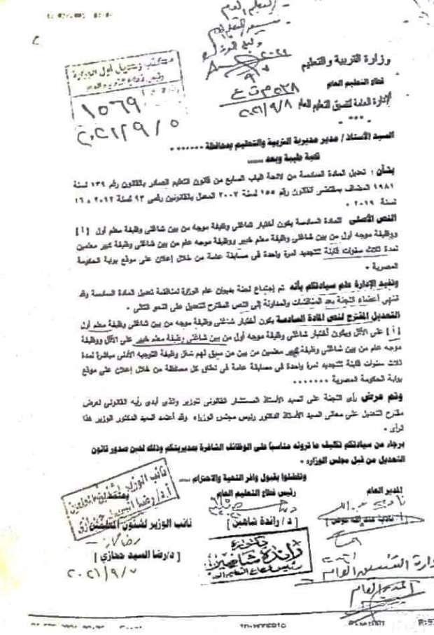 - وظيفة «موجه عام» من بين شاغلي من سبق لهم شغل وظيفة التوجيه الأدنى مباشرة لمدة ثلاثة سنوات قابلة للتجديد مرة واحدة في مسابقة عامة تطلق في كل محافظة، من خلال إعلان على موقع بوابة الحكومة المصرية.