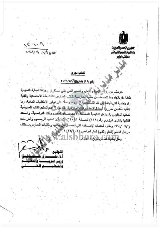ونشر الناشط التعليمي خالد الشريف علي جروب المدرس اليوم، علي موقع التواصل الاجتماعي فيسبوك، تدوينة تضمنت الآتي: "التعليم عدم تسليم الكتب الدراسية للطلاب الا بعد سداد المصروفات الدراسية لمراحل التعليم المختلفة".