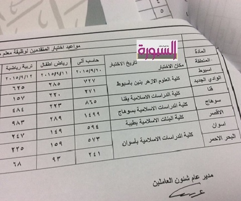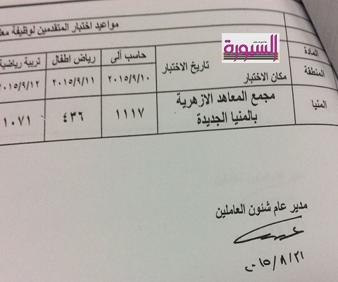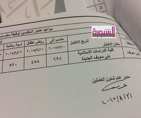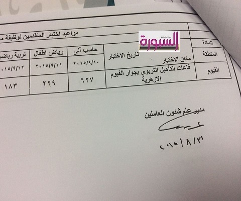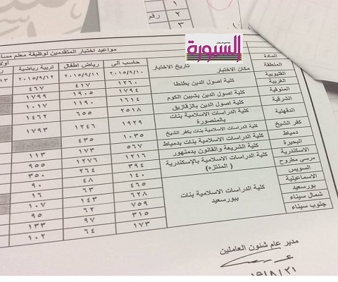 السبت ٩/١٢ تربية رياضية وسيعلن عن بقية الوظائف لاحقا.