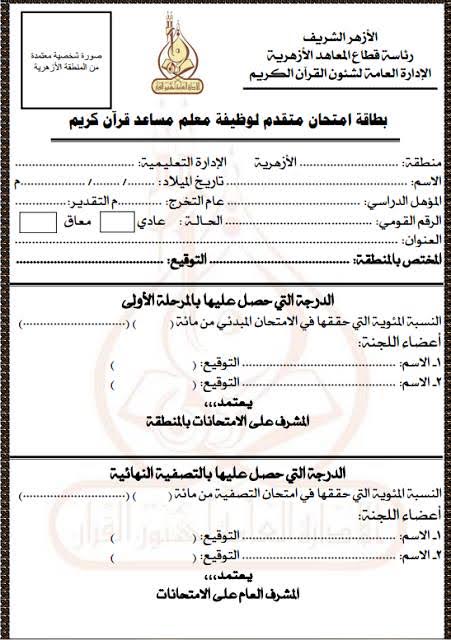 تقرَّر أن تبدأ اختبارات مادة القرآن الكريم بوظائف الأزهر الجديدة التي تم الإعلان عنها في أغسطس الماضي، وذلك يوم الخميس المقبل الموافق 10 سبتمبر 2015، وذلك بامتحان المتقدمين لوظيفة مدرس القرأن الكريم .