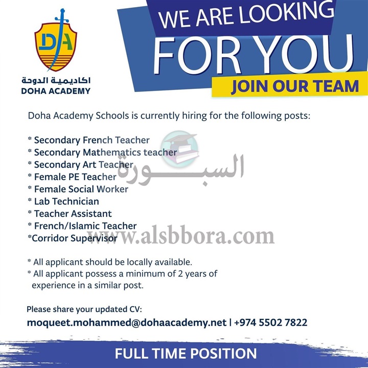 تعلن اكاديمية الدوحة بقطر عن وظائف جديدة للمعلمين والمعلمات وفقا لنص الإعلان التالي: