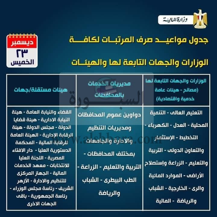 "تنشر"السبورة" الموعد الجديد لصرف مرتبات شهر ديسمبر للمعلمين وفقا لجدول وزارة المالية.