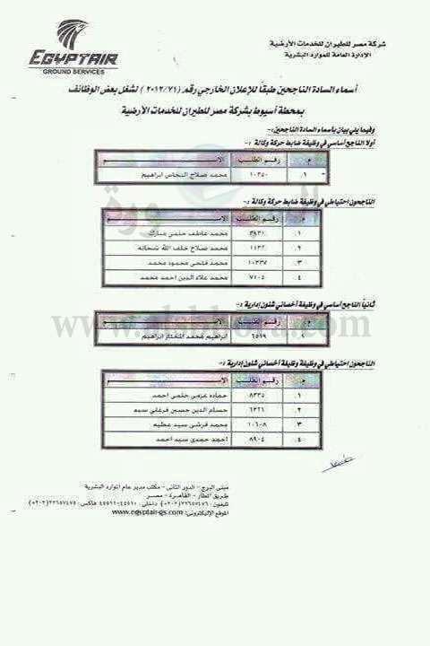 بالأسماء .. ننشر نتيجة مسابقة وزارة الطيران المدني بمحطة أسيوط