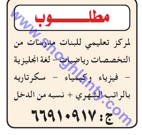يعلن معهد تعليمي في قطر عن حاجته للتعاقد مع معلمين ومعلمات وذلك في التخصصات التالية: