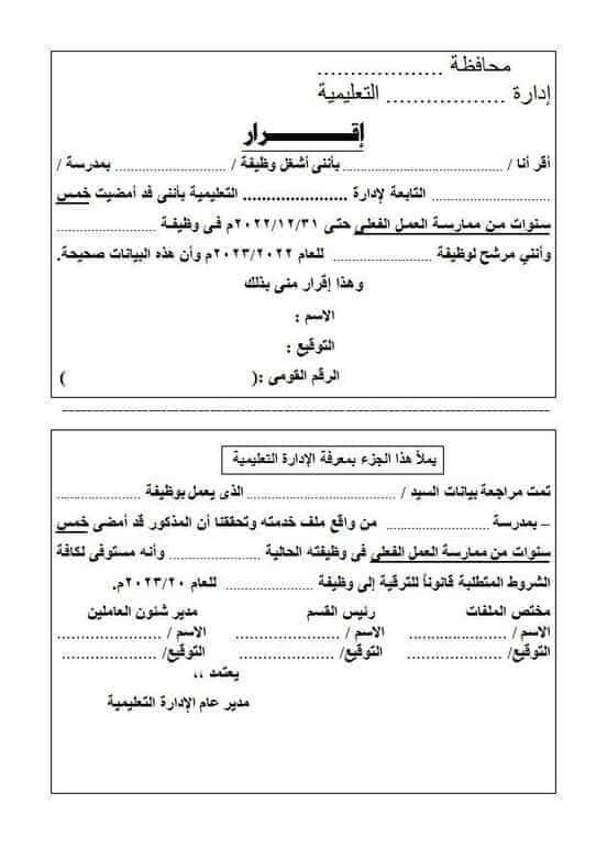 اقرار من المعلم بقضاء 5 سنوات فى الوظيفة الفعلية
