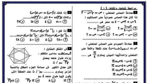 بنك لأهم الأسئلة فى مادة التفاضل والتكامل للثانوية العامة