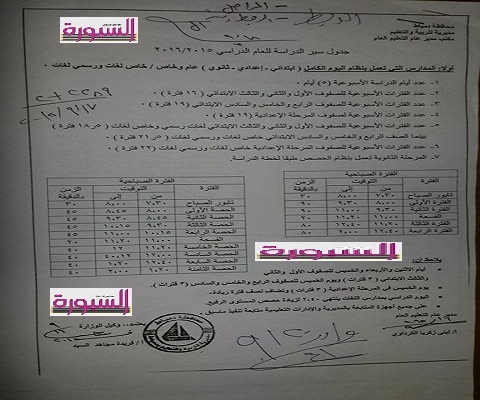 ننشر ..جدول سير الدراسة ومواعيد الحصص وعددها للعام الدراسي الدراسي الجدد 2015 - 2016